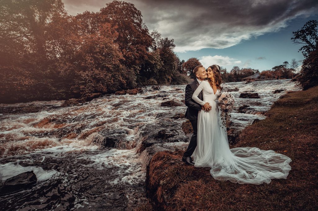 If you book your wedding at Galgorm Spa & Golf Resort you will honestly have the most stunning sublime wedding photography backdrops. At Galgorm you have three wedding venue options. The first is the Great Hall for your wedding. Second and probably most popular is the modern and sumptuous Renaissance Suite with picture-perfect views of the waterfall at galgorm. Third but by no means, the least important is the Four Season Suite, and is perfect for a smaller wedding up to 100 guests. Then you have a choice of two ceremony rooms, The ever popular 'Phantom House' which was an old turbine mill and now hosts civil partnerships, marriages, blessings and humanist ceremonies. The other is the 'Ghost House' and it would be in my opinion suited to a more modern bride and groom or couple. You could almost say it has a Scandinavian style to it with its airy light structure. Something new and possibly a little different is having your ceremony outdoors in a fairytale setting in lush greenery beside the banks of the river maine.